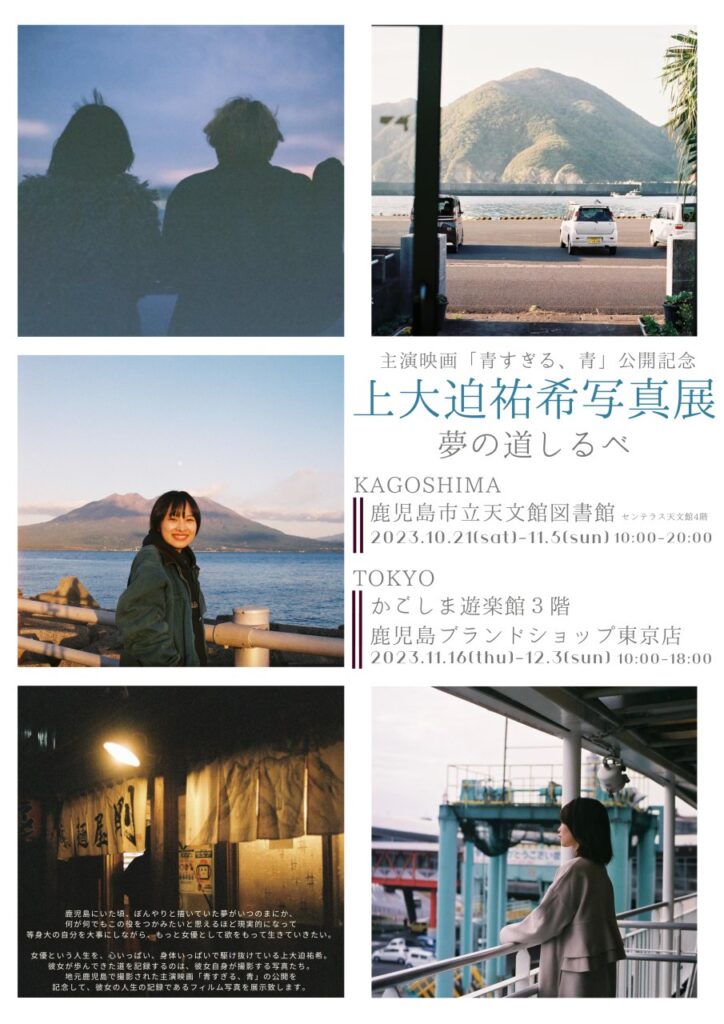 ⼥優という⼈⽣を、⼼いっぱい、⾝体いっぱいで駆け抜けている彼⼥が歩んできた道を記録するのは、彼⼥⾃⾝が撮影するフィルムカメラ。地元⿅児島を⽪切りに、全国順次公開する映画「⻘すぎる、⻘」の公開を記念し、⿅児島市天⽂館図書館、東京ではかごしま遊楽館 3 階 ⿅児島ブランドショップ東京店にて、単独としては初の上⼤迫祐希写真展「夢の道しるべ」が開催されることとなった。映画「⻘すぎる、⻘」の撮影期間に、撮影したフィルム写真を初公開︕