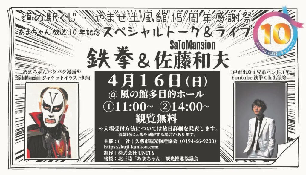 4月15日~16日開催「道の駅くじ・やませ土風館15周年感謝祭」のスペシャルイベント。