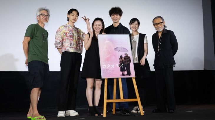 8月5日(土)、シネマート新宿にて、映画『カタオモイ』の公開記念舞台挨拶が開催された。舞台挨拶には、W主演の丸純子、細田善彦。中村守里、片岡鶴太郎、平井亜門、いまおかしんじ監督が登壇(MC:古藤真彦)、共演者の印象や撮影時のエピソードを語った。