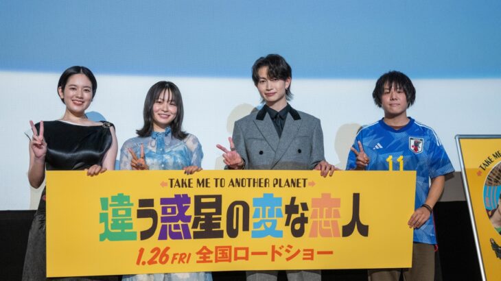 1月17日(水)に池袋HUMAXシネマズにて、『違う惑星の変な恋人』の特別先行上映会が行われ、莉子(むっちゃん役)、筧美和子(グリコ役)、綱啓永(モー役)、木村聡志監督が登壇した。本作に関してのトークを展開した。(登壇予定だった中島歩は体調不良のため欠席)