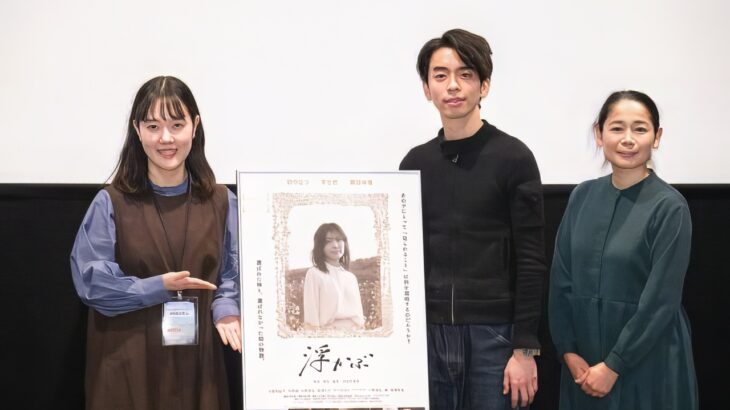 3月23日(土)、映画『浮かぶ』が、高崎映画祭「監督たちの現在(いま)」セレクションにて、シネマテーク高崎で上映。諏訪珠理(進 役)と吉田奈津美監督、サプライズで、結衣(演・田中なつ)と佳世(演・芋生悠)の母親役の三坂知絵子が登壇。5年前に撮影された本作を振り返った。