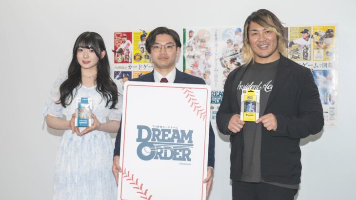 4月18日(木)ブシロードは、「プロ野球カードゲーム DREAM ORDER(ドリームオーダー)」の発売直前記者会見を開催した。会見には、ブシロード代表取締役社長の木谷高明氏や本作のプロデューサー・小林伸斗氏、新日本プロレスリング代表取締役社長兼レスラーの棚橋弘至さん、MCとして声優の進藤あまねさんが登壇。本作の楽しみ方や、連動イベント企画となる始球式等の話題で盛り上がった。
