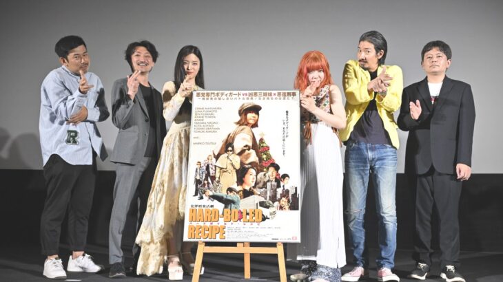 2024年4月26日(金)、シネマート新宿にて、映画『ハードボイルド・レシピ』の初日舞台挨拶が行われた。舞台挨拶には、シンガー・ソングライターの眉村ちあき、藤本ルナ、木村知貴、長尾卓磨、松浦本監督が登壇。MCは、眉村さんと親交のある岡野陽一が務めた。エグゼクティブプロデューサーを務めた眉村のかなり突っ込んだ話を含め、劇場内が爆笑するトークを繰り広げた。