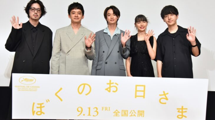 8月19日(月)、奥山大史の商業映画デビュー作『ぼくのお日さま』のジャパンプレミアが、テアトル新宿(東京)にて開催。越山敬達、中西希亜良、池松壮亮、若葉竜也、奥山監督がそろって舞台挨拶に登壇した。