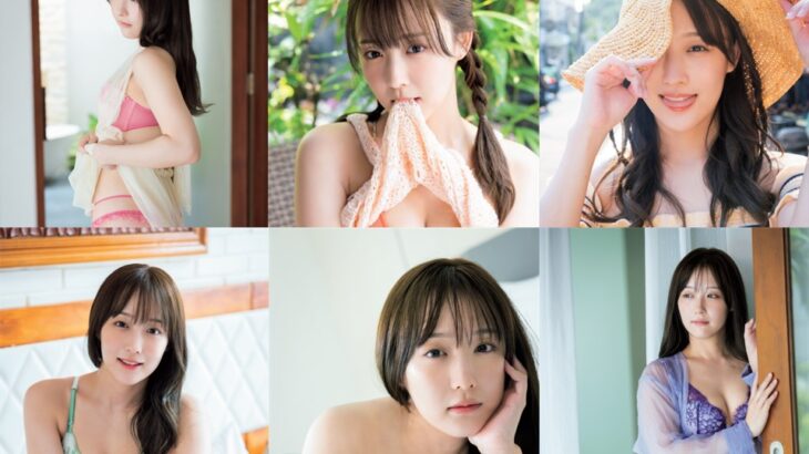 「王道グラビア」には欠かせない、美しいビーチや爽やかなプールでのビキニショットはもちろん、自身初となるベッドでのランジェリーショットも必見。
