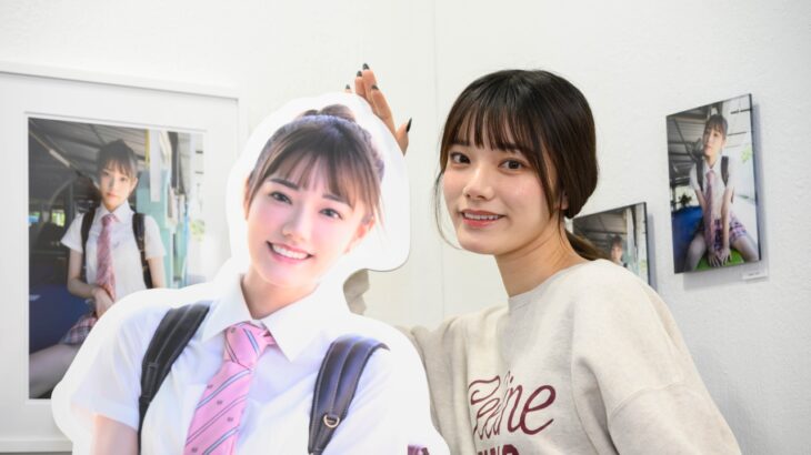 会場では、写真集では見られない様々なサイズで表現された写真が楽しめる。玲奈のお気に入りは、ネコのようなポーズで大人っぽさを表現した、笑わない表情の作品だそうだ。撮影中は「無」の状態で自然体で臨み、カメラマンの指示に従ったり、自身でポージングを考えたりしながら撮影に臨んだという。ぜひ、写真展で確認してほしい。