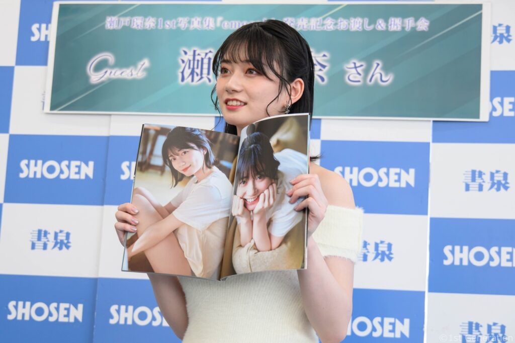 瀬戸さん: 「あまり緊張していないのですが、初めての経験なので楽しみにしていました。写真集を出すという実感がわかなかったので、ファンの皆さんと楽しく写真が撮れたという感じです。写真集を出してからの反響の方がびっくりしていて、SNSなどで皆さんの感想を見て嬉しかったです」。