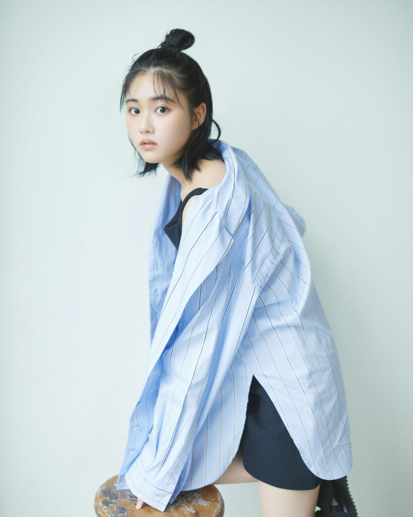 等身大の素顔が垣間見えるナチュラルなカットから、原自身がリクエストした大人っぽいドレス、オフショルダーのニットワンピ、彼女感あふれる「彼シャツ」でリラックスするカットなど、「今の原菜乃華」を切り取った、エモーショナルで多彩なスチールを凝縮! さらにゴスロリ風衣装などでの撮影に挑戦した。