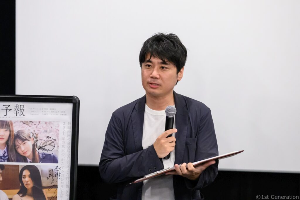 外山文治監督は、今回の舞台挨拶でMCを務めるのは初めてで「緊張している」と話し、登壇者からも「不思議ですね。監督がMCをされるって私たち驚いてるんです」との声が上がった。作品集について監督は、「全くジャンルの違う3作品だが、全て今、令和7年(2025年)の東京や全国の風景を捉えた作品」「今年しか撮れない空気というか、来年にはきっと変わってしまっているムードみたいなものを味わってもらいたいと思って作った」と制作意図を明かした。また、「forget-me-not」での宇野愛海へのエアドラムという指示は、「バンドをやっている設定で、ちょっとドラムをやって、という無茶ぶりをした」と語った。