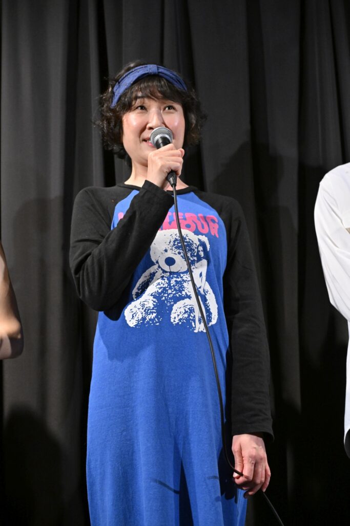 キンちゃんのママ役の猫背椿さんは、「お一人でやられる作業量じゃない」監督に「すごいなと思って乗っかりたい」と感じたと出演理由を語り、脚本も「全然なんか思ってたのと違う」面白さがあったと述べた。自身も声優経験はほとんどなく「緊張している」が、初日にお客様に会えて「とても嬉しい」と語った。