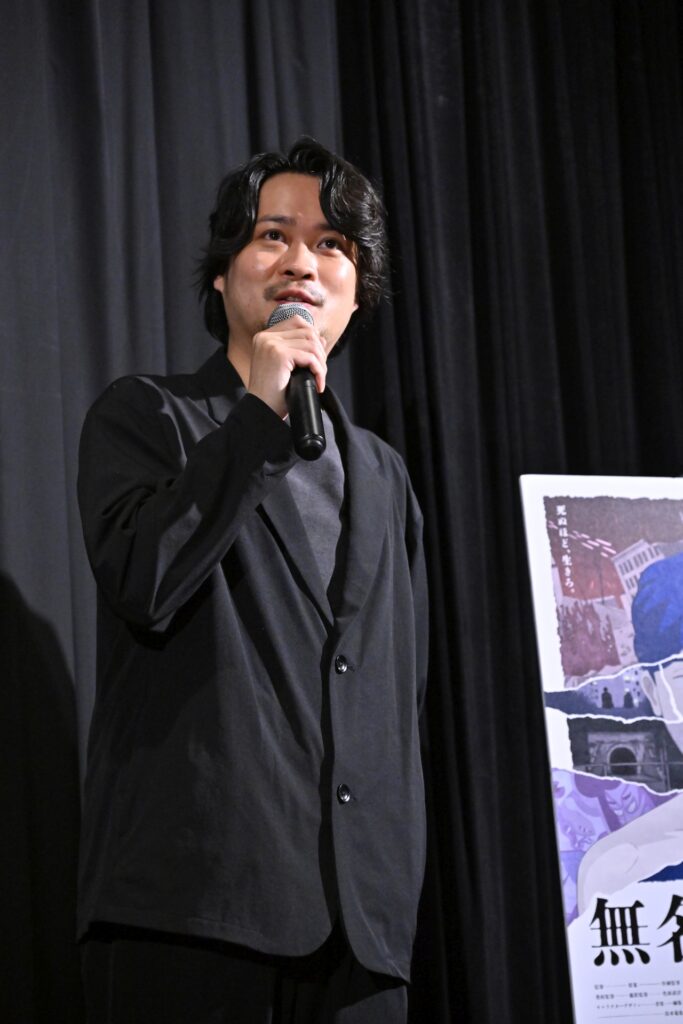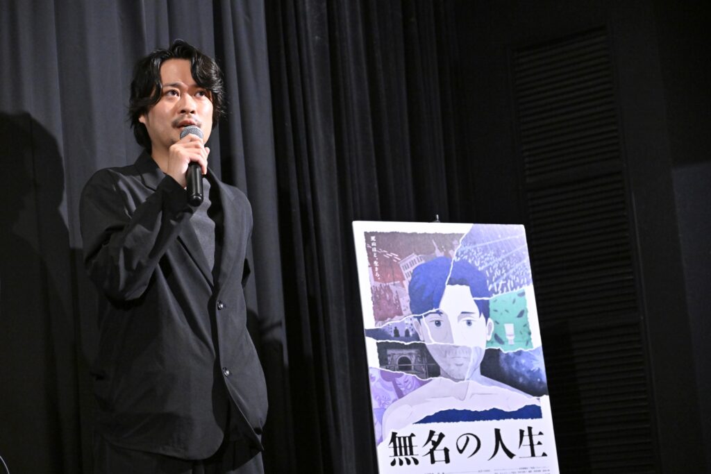 舞台挨拶は、まず鈴木監督が観客への感謝を述べつつ、「すごい映画が誕生したなと思っています」と作品への思いを語った。鈴木監督は、短編アニメーションを2本制作した後に「長編といえば長編だろう」と思い立ち、本作の制作を始めたと明かした。制作のきっかけは「無名の人生」というタイトルが最初にパッと浮かんだことで、「名前と人生の映画を作ればいいんだな」という「見切り発車」の部分もあったと述べた。
