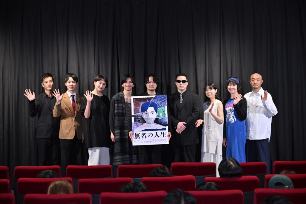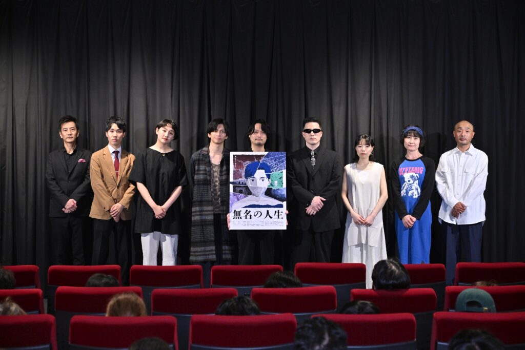 2025年5月16日、東京・新宿武蔵野館にて、アニメーション映画『無名の人生』の初日舞台挨拶が開催された。本作は、2021年にコロナ禍を機にiPad一つで独学でアニメーション制作を始めたという鈴木竜也監督の長編デビュー作となる。監督がたった一人で1年半を費やし描き上げたこの作品は、生まれてから死ぬまでに様々な呼称で呼ばれた主人公の波乱に満ちた100年の生涯を描き出す。舞台挨拶には、鈴木監督に加え、主演のACE COOL、田中偉登、宇野祥平、猫背椿、鄭玲美、鎌滝恵利、西野諒太郎(シンクロニシティ)、津田寛治ら、世代やフィールドを超えた異色のキャスト陣が登壇し、公開初日を迎えた喜びを語った。