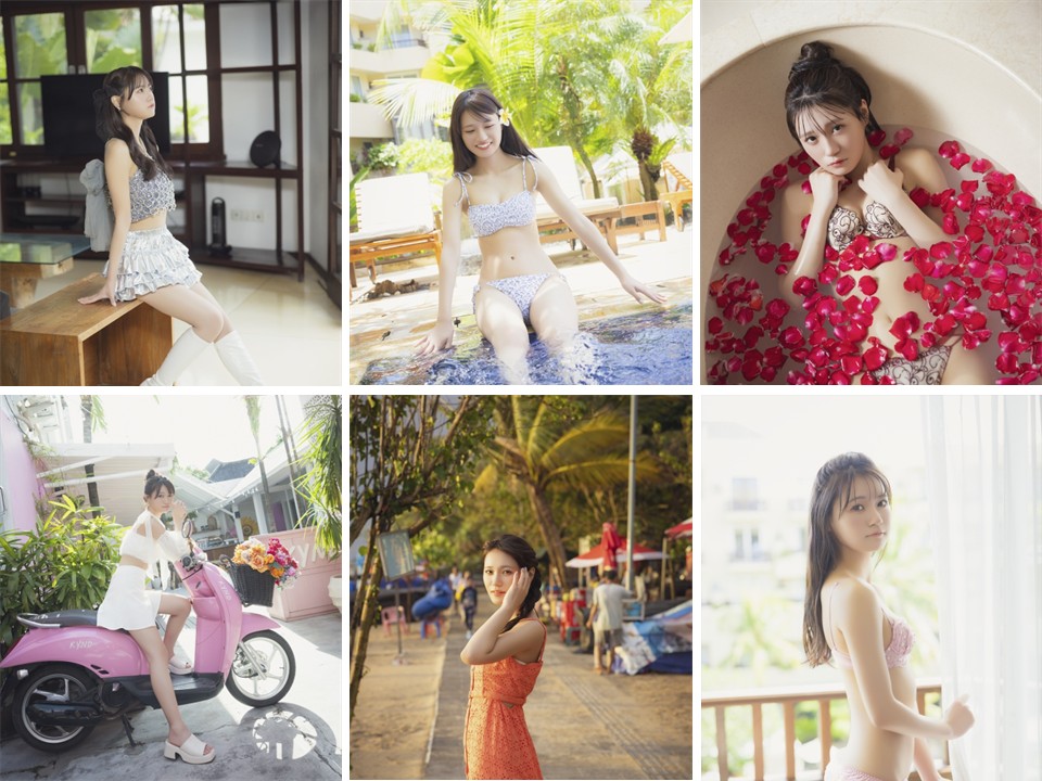 ロケは初めて訪れたというインドネシア・バリ。クタビーチにすぐにアクセスできる巨大リゾートホテルやプール付きのヴィラを貸し切り、バリで大人気のピンクの外観のおしゃれなカフェやショッピングモール、スーパーマーケットでも撮影。スコールが来るほどの雨期にもかかわらず、撮影時はすべて晴れて南国らしい雰囲気の一冊となった。