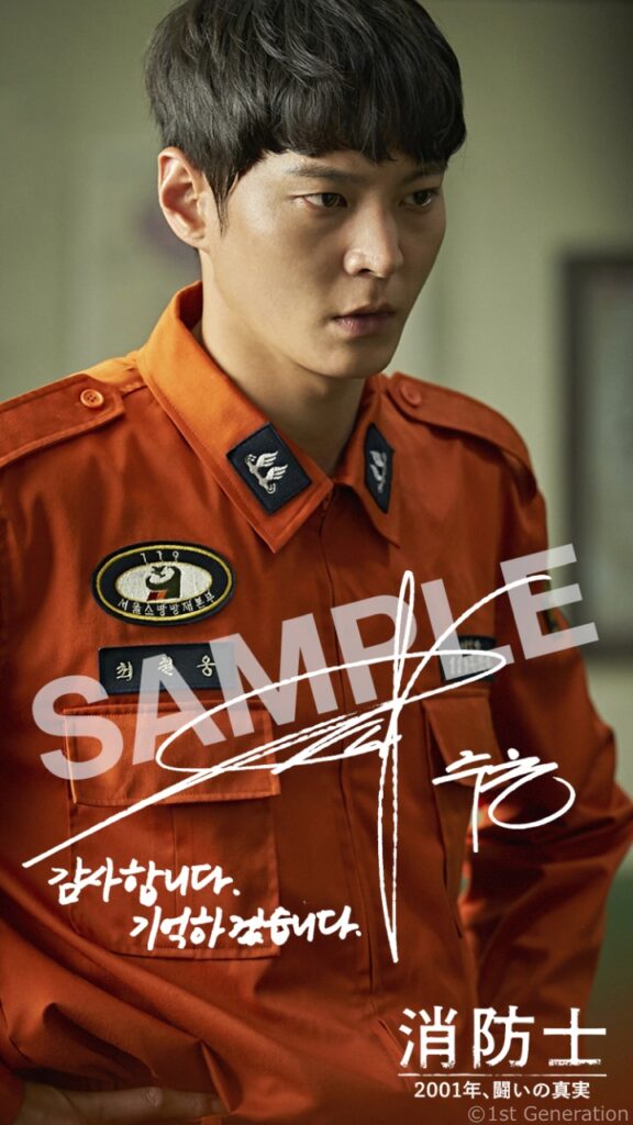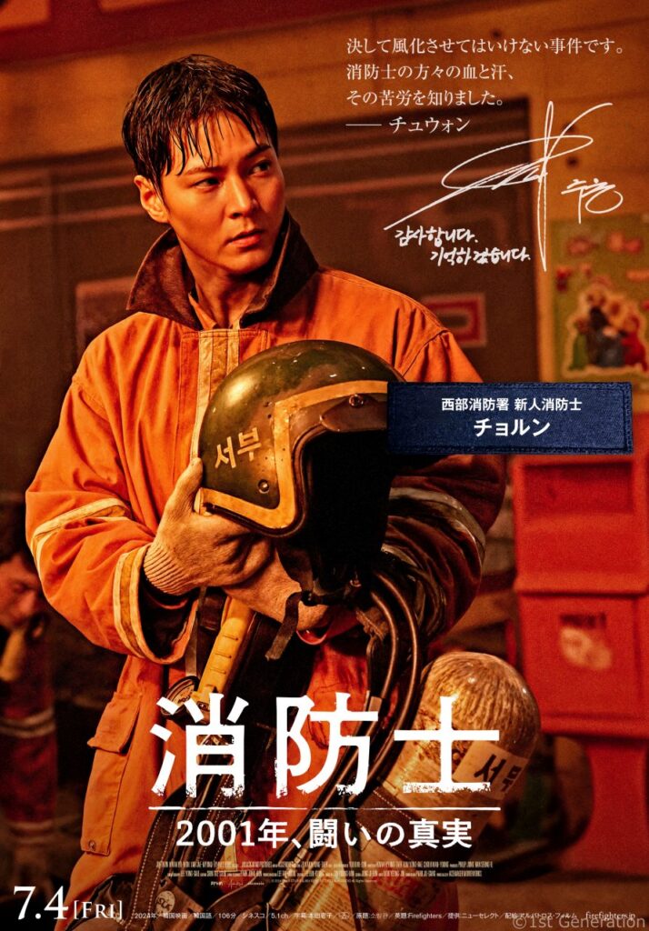チョルンらメインキャラクター7人のポスタービジュアルが完成しました。キャラクターポスターには、本作の元になった火災惨事事件、そして消防士への方々に向けたキャストの想いの一言が入った本作ならではのビジュアルになりました。