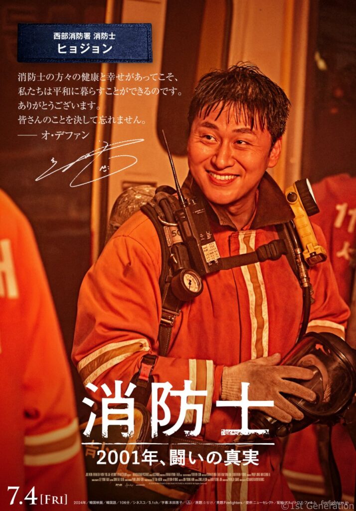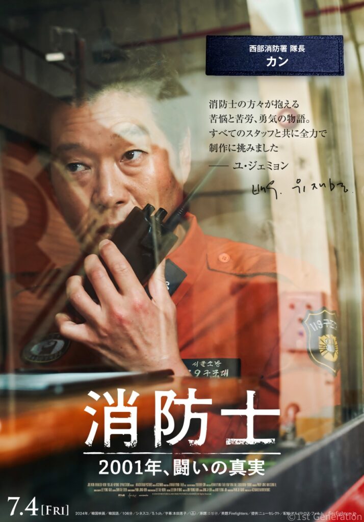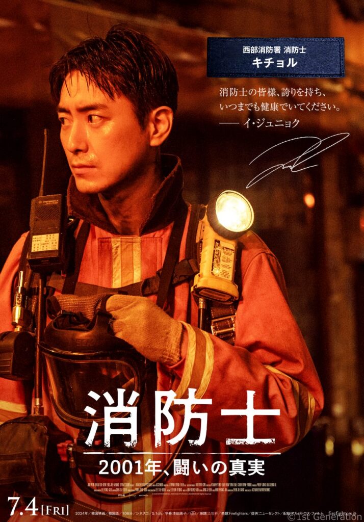 映画『消防士 2001年、闘いの真実』(本国タイトル・『소방관』、英題『Firefighters』)が2025年7月4日(金)より全国公開が決定。本作は2001年3月4日に発生した「弘済洞火災惨事事件」を基に、消防士たちの凄絶な闘いが描かれており、韓国での公開時には初登場1位(12/4公開)・3週連続第1位(洋画除く)、さらに12月に公開された中2024年の興行収入で国内映画トップ5にランクインする大ヒットを遂げている。このたび、事故現場へ緊張の初出動シーン、キャラクターポスタービジュアル一挙解禁。