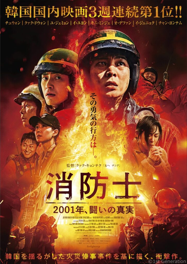 2001年3月4日に発生した「弘済洞火災惨事事件」を基に、『友へ チング』のクァク・キョンテク監督が消防士たちの凄絶な闘いを描く。当時は、消防士の装備や待遇が劣悪な環境の中で、命懸けの消火や人命救助が行われていた。主演は、映画、TV ドラマ、歌手など幅広く活躍するチュウォン。そして、『哭声 コクソン』のクァク・ドウォン、「梨泰院クラス」のユ・ジェミョンなど、韓国を代表する実力派俳優が脇を固める。そして、歌手パク・ヒョシンの新曲「HERO」が挿入され、感動を添える。韓国では 2024 年 12 月に公開されながら、『破墓/パミョ』『犯罪都市 PUNISHMENT』などに次いで、年間の興行収入で国内映画のトップ5にランクインする大ヒットを遂げた。