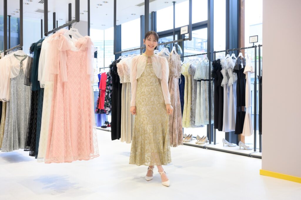 職業柄、普段からドレスを着る機会が多い貴島さんですが、プライベートでは「友人の結婚式だったり、記念日でデートに行くときは着ます」とのことです。しかし「頻繁に着るものではないので、たくさん持つのは難しいです。気分やシーンは毎回違うと思うので、その度に買うのは現実的ではないですよね」と悩みを抱えていたそうで、LULUTI HARAJUKUオープンを「レンタルドレスは楽ですし、合理的な選択だと思います」と喜びを表した。