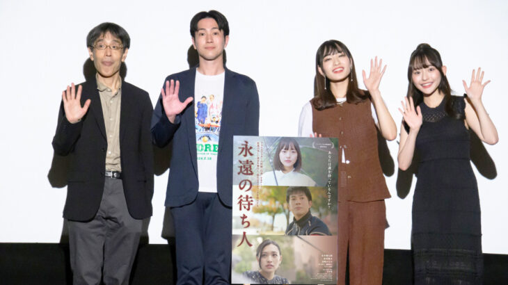 ドストエフスキーの短編「白夜」をモチーフに、愛を深く考察する映画『永遠の待ち人』(太田慶監督)の公開記念舞台挨拶が6月7日、東京の池袋シネマ・ロサで行われた。主演の永里健太朗、ヒロインの北村優衣、妻役の高崎かなみ、そして太田慶監督が登壇し、満員の観客を前に作品への思いや撮影秘話を語った。