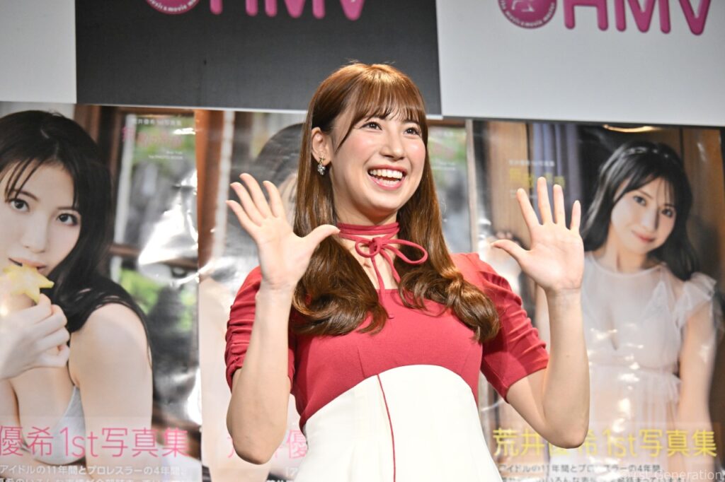元SKE48で現役女子プロレスラーとして活躍中の荒井優希さんの1st写真集『荒井優希1st写真集 無敵の素顔』の発売を記念し、2025年6月21日(土)にHMVエソラ池袋 3階 イベントスペースにて、発売記念イベントが開催されました。SKE48卒業後、プロレスラーとして新たな道を歩み始めた荒井優希さんの「無敵の素顔」が披露されたこのイベントでは、写真集に込められた思いや、アイドル時代から続く活動への深い洞察が語られました。