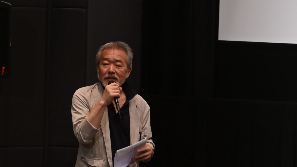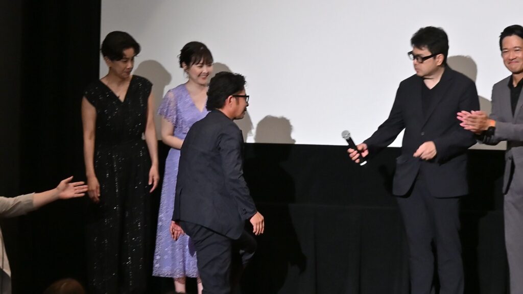 最後に、ドキュメンタリーパートに出演した脊尾昌壮さんが一言を求められ観客席から壇上に呼び込まれ、障害者が登場する映画ではモザイクがかかることが多い中で、この映画では「モザイクなしで出ていることの意義」を強調し、「すごくいい映画になった」と感謝を述べました。