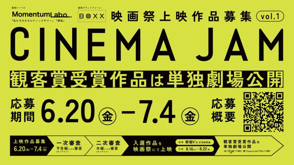 『CINEMA JAM vol.1』は、配給レーベルMomentumLabo.と配信プラットフォームBOXXがタッグを組んだクリエイターと観客をつなぐ新たな映画祭。