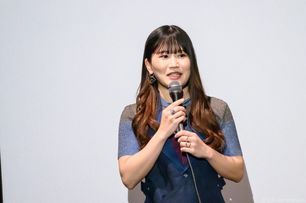 木崎穂花役の大熊杏優さんは、「一見明るく見えるんですけど、うちには不安を抱えていたりするとっても繊細な女の子」と役柄を紹介。見どころとして、ハルカと一緒にいる部屋のシーンを挙げ、監督が事前に音を知らせずに壁を叩くなどして、「本当にリアルにびっくりしてる様子が描かれてます」と、役者のリアルな反応を引き出す演出があったことを明かしました。