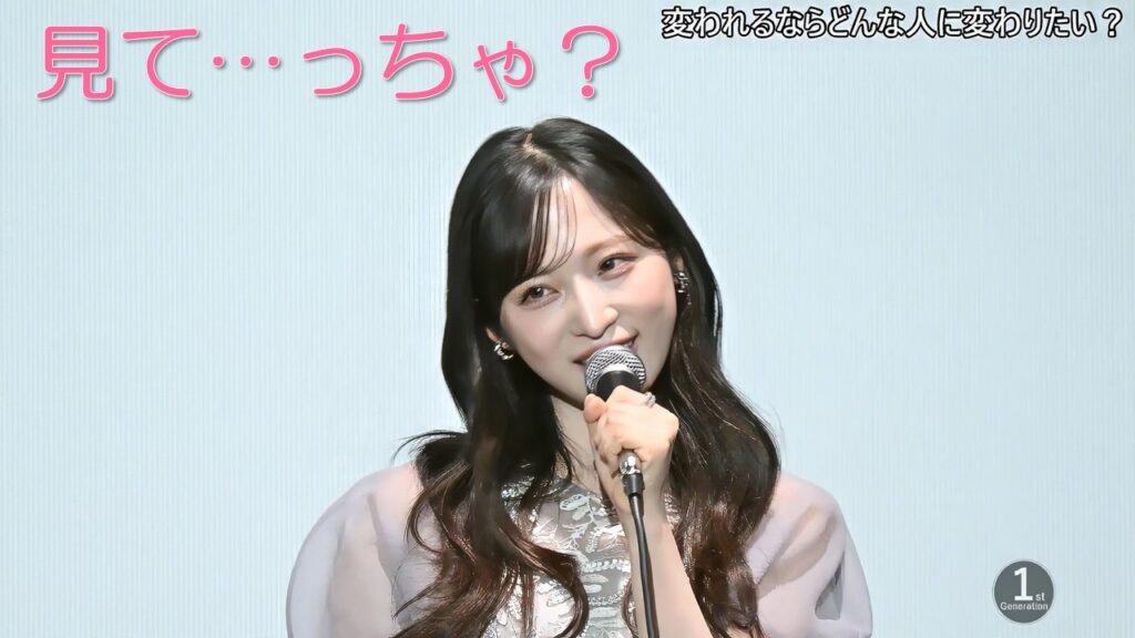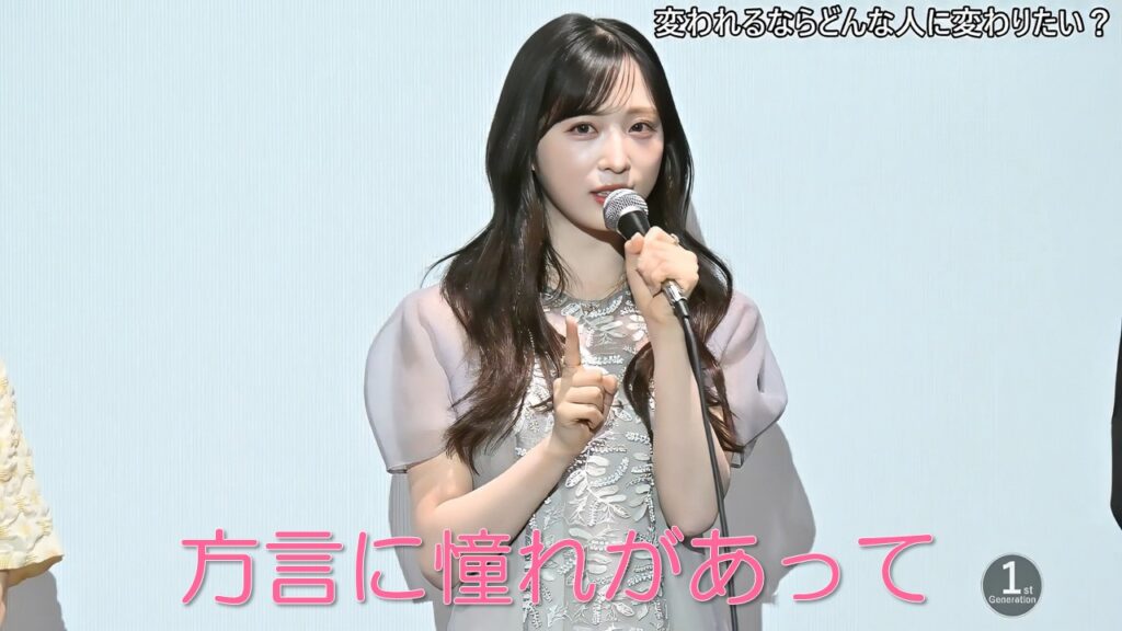 MCからは、「もし今から自分を変えられるとしたらどんな人になりたいか」というユニークな質問が投げかけられました。大熊杏優さんは東京生まれ東京育ちで方言の経験がないため、「博多弁に憧れがあって可愛いなって思ってるので博多育ちの女の子になりたい」と語り、博多弁での可愛らしいセリフを披露し、会場を和ませました。