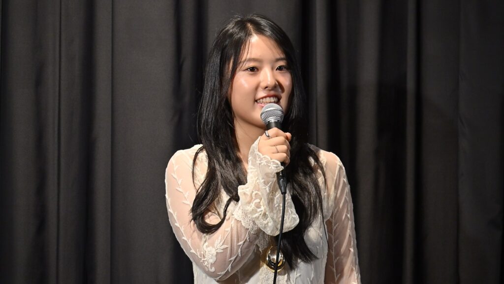 その『時代おくれ』という言葉を桐島に言ったヨーコ役の海空は、実は伴明監督と本作にも出演している女優の高橋惠子のお孫さんで、本作が俳優デビュー。「俳優を目指したいという噂を聞きつけた祖父から家で、『こういう役で出てみない?』って言っていただいたんですけど、私の心情としては、事務所にも所属していない状態で、ステップをスキップした状態で出演するのは申し訳ない気持ちもあるし、『俳優として積み重ねてから作品に出たいです』と丁寧にお断りしたんですけれど、その後も2〜3回猛烈なオファーを頂いた。私がやらなきゃと思ったのは、3回目に、『俺はいつまで生きているかわからない』と脅されまして、『先延ばししたらダメなんだ』と私も決心をした」と話し、会場を笑わせた。
