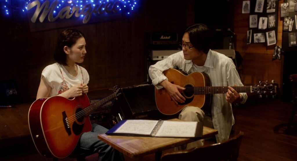 劇中、毎熊と北は、ギターの弾き語りを披露。毎熊は、「ちゃんとコードを弾いて歌うのは初めてだった」とのこと。北は「趣味でやっていましたが、(いつもは楽譜を見ながら弾くので、)楽譜を覚えるのが大変だったのと、毎熊さんが(練習時に)持っていたギターが本格的すぎて、『あれ、いつもやっているのかな?』と思った」と言うと、毎熊は、「あれは、借りパクしたやつ」と真相を告白した。