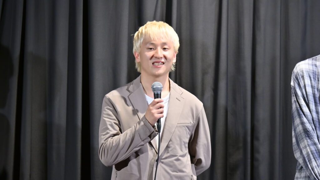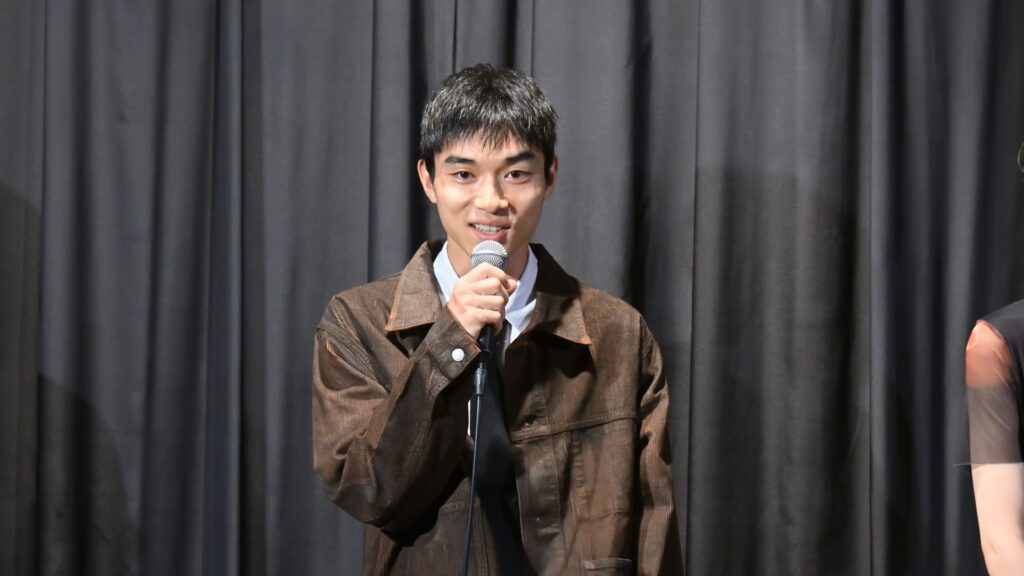 修二と関わることになる聡を演じた藤江琢磨さんは、雨の中の来場に感謝しつつ、「個人的には、この天気がちょっと映画にふさわしいかな」と感じると述べ、見終わった後に共感されるのではないかと期待を寄せました。