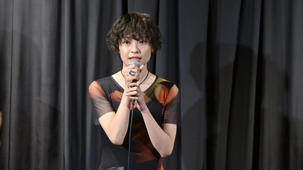 悲しい過去を持った小川翠を演じた芋生悠さんは、足元の悪い中、来場してくれた観客に感謝し、皆で頑張ったこの作品を届けられることが本当に嬉しいと語りました。初日公開はこれから先となるため、今日の先行上映をきっかけに「皆さんの力をお借りして、どんどんいろんな人に届けられるようになったらいいな」と作品の広がりへの期待を語りました。