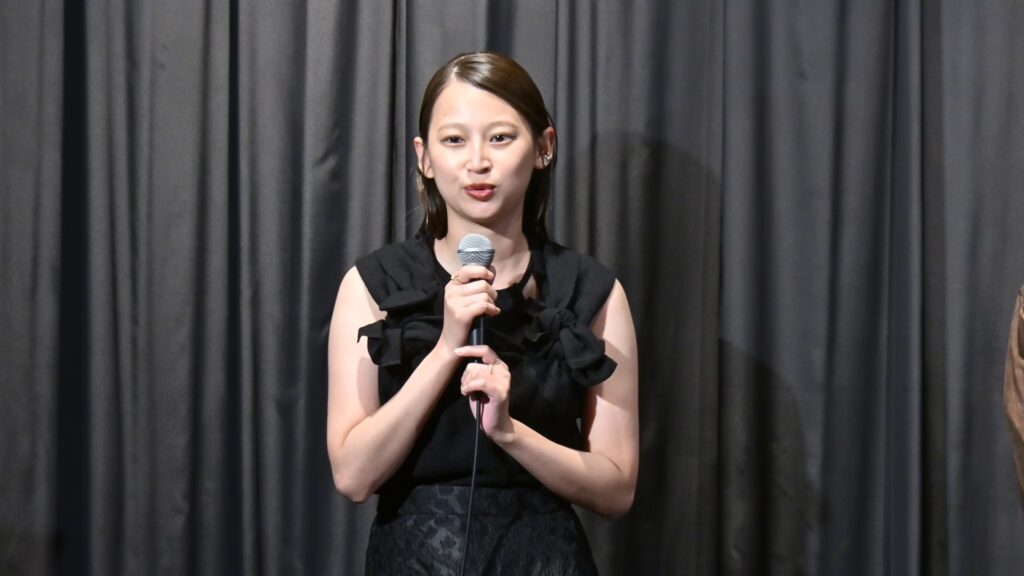翠の友人の貴子を演じた中尾有伽さんは、数多くの映画が上映されている中で、この日のこの時間、この映画を選んで見に来てくれた観客一人ひとりに感謝の気持ちを伝え、「楽しんでいてだければ」と笑顔で挨拶しました。