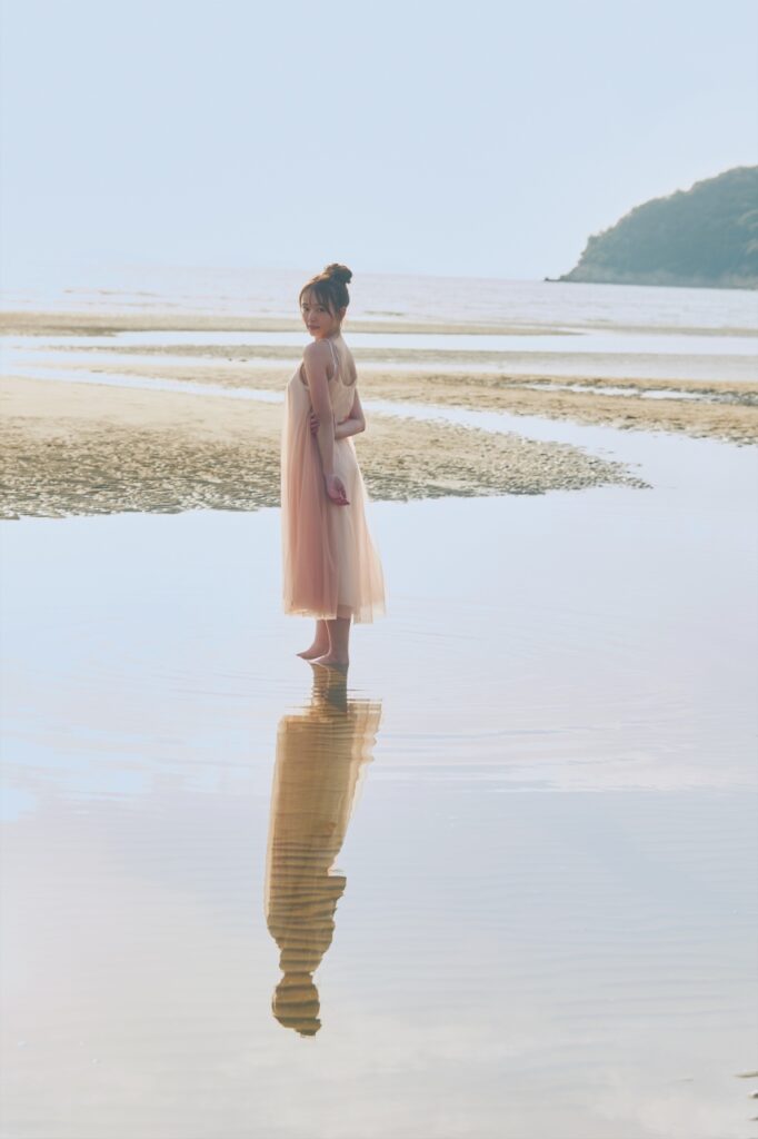 お気に入りのカットとして、香川県にある「日本のウユニ塩湖」と呼ばれる父母ヶ浜の写真を挙げ、「水面に鏡のように自分が映るのですごい映えるスポットとして有名で、ここは絶対写真集の中に入れたかった」と理由を説明。先行カットでセンシティブ認定された写真も迷ったが、モザイクがかかることを恐れて父母ヶ浜を選んだという。表紙についても、ギリギリのラインを攻めつつも、SNS投稿時にセンシティブ認定がかからないことを考慮して選んだことを明かした。