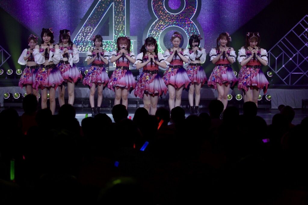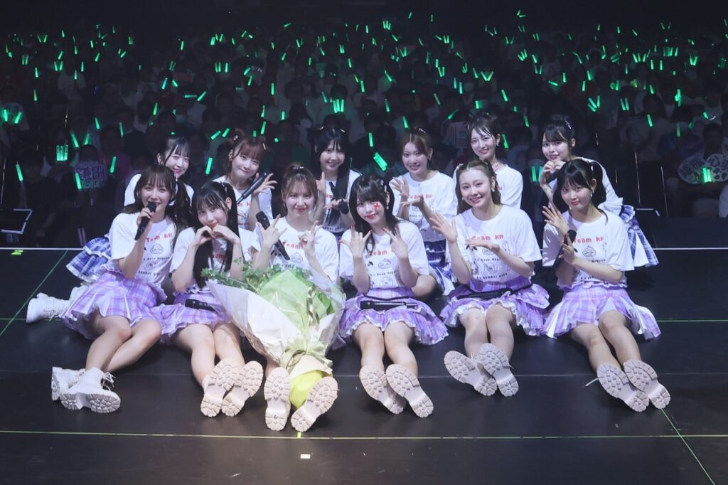 8月9日(土)の仙台公演は、8月末でのグループ卒業を発表している菅原茉椰の故郷凱旋公演に。昼公演のアンコールでは、2020年に「ソーユートコあるよね?」のカップリング曲としてリリース後、コロナ禍の影響もあり一度もパフォーマンスしたことがなかったという「ストレートな純情」を菅原の希望により初披露。同曲のセンターを務める松本慈子と涙ぐみながら喜びました。夜公演では、卒業する菅原に向けてチームのメンバー一人一人からメッセージが送られ、佐藤佳穂から花束を贈るセレモニーも。菅原は「Team KⅡは菅原と同じように地方出身のメンバーが多くて、いろんな夢を持っているメンバーがたくさんいるので、これからもTeam KⅡのメンバーを応援してくれると嬉しいです。本当にありがとうございました」と呼びかけた。