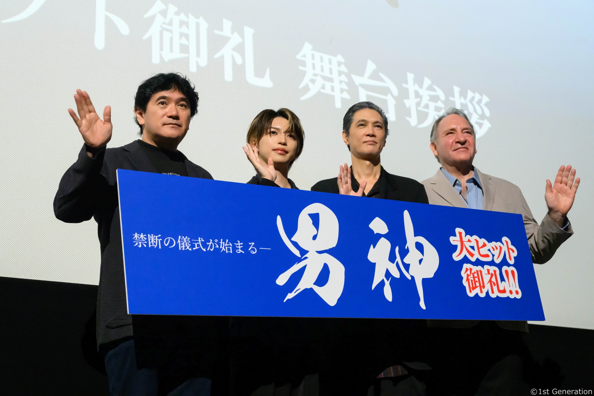 最後の挨拶で岩橋は「海外も含めていろいろなところで観てもらえているようで、とてもうれしいです」と微笑み、「初めての映画が『男神』でよかったです。まだまだ上映しているので、英語字幕バージョンも10回以上は観てもらって(笑)、周りの人に広めてください!」と呼びかけ、大ヒット御礼舞台挨拶イベントを締めくくった。