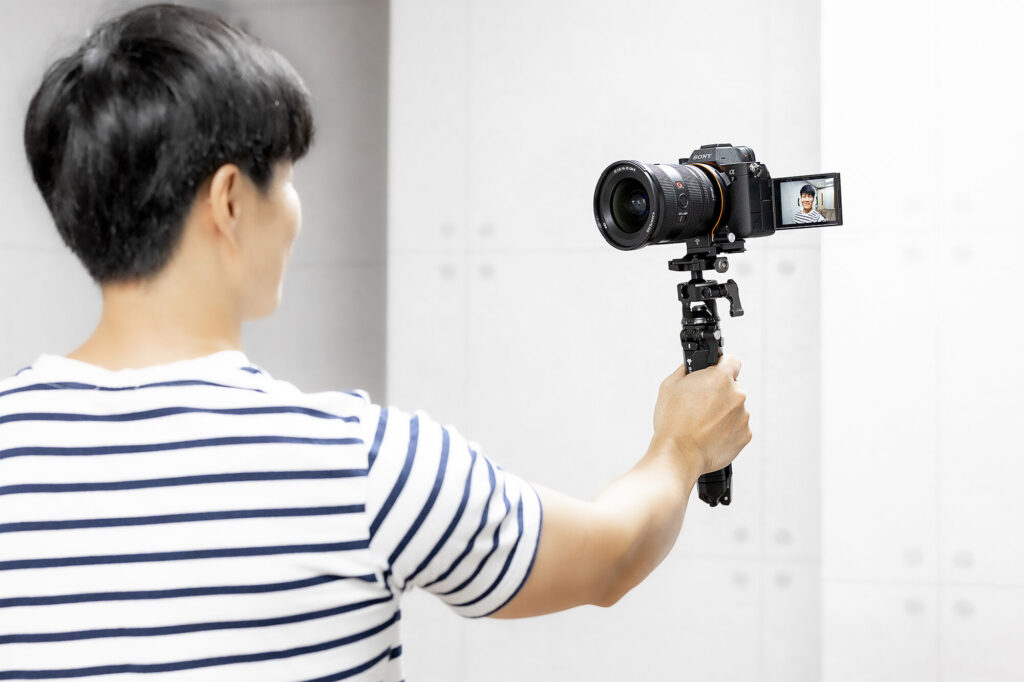 クランプを完全に閉じれば、 超コンパクトなポータブル三脚に!写真も動画も、いつでもどこでも快適な手持ち撮影が可能!