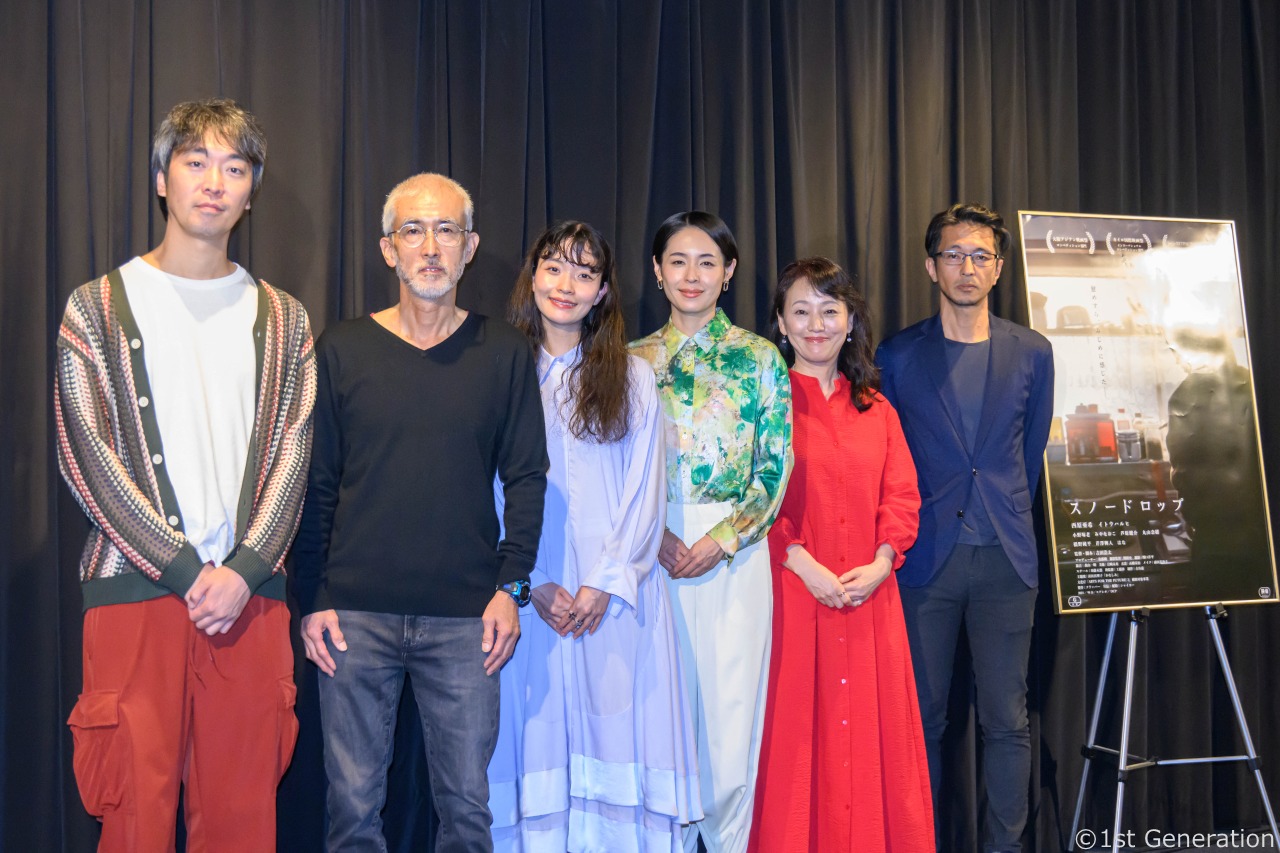 映画『スノードロップ』の公開記念舞台挨拶が、10月11日(土)に新宿武蔵野館にて開催され、西原亜希、イトウハルヒ、小野塚老、みやなおこ、芦原健介、そして吉田浩太監督が登壇した。MCは東紗友美が務め、キャストらは過酷を極めた撮影秘話や作品に込めたメッセージを披露した。