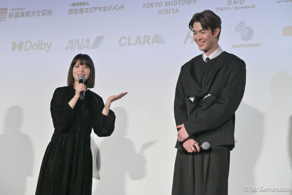 佐藤タモツ役の宮沢氷魚さんは、会場に集まった多くの観客に「感無量です」と感謝を伝え、この映画は1年以上に前に撮影されたが、「スタートラインにようやく立てたのかな」という気持ちだと述べた。宮沢さんは、一般公開が11月28日であることを伝え、観客がこの映画をどのように受け止めるのか楽しみにしていると語った。
