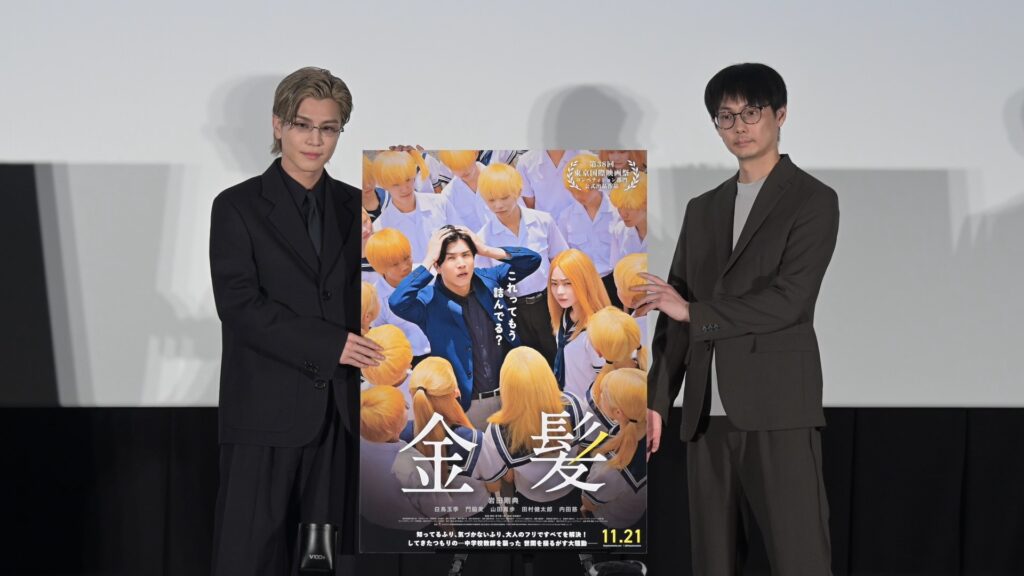 2025年11月21日(金)公開予定の映画『金髪』(監督・脚本:坂下雄一郎)のQ&Aイベントが、11月4日(火)、第38回 東京国際映画祭にて開催され、主演の岩田剛典と坂下雄一郎監督が登壇した。観客を前に、岩田は来場者に映画を楽しんでいただけたか尋ね、この後の質疑応答を含めてたっぷりと映画について語りたいと挨拶した。坂下監督は、映画が完成し、このような大きな映画祭で上映されることが非常にありがたいと述べた。