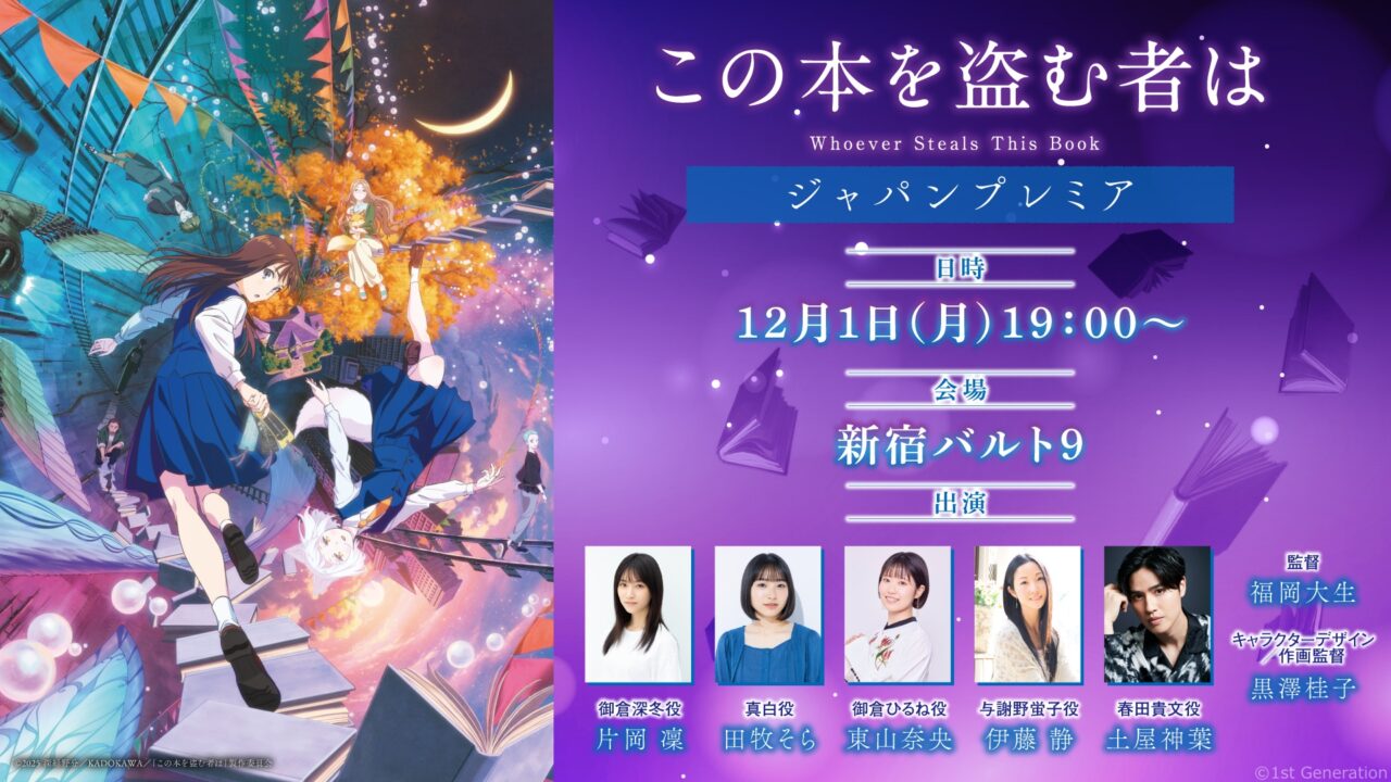 2021年本屋大賞ノミネートの深緑野分による人気小説を原作とする劇場アニメーション『この本を盗む者は』。この度、12月26日(金)より、新宿バルト9ほか全国公開が決定。公開に先んじて、12月1日(月)に新宿バルト9にて豪華キャスト&スタッフ登壇のジャパンプレミアが開催され、主演:片岡 凜、共演:田牧そらを始め、東山奈央、伊藤 静、土屋神葉の登壇が決まっている。