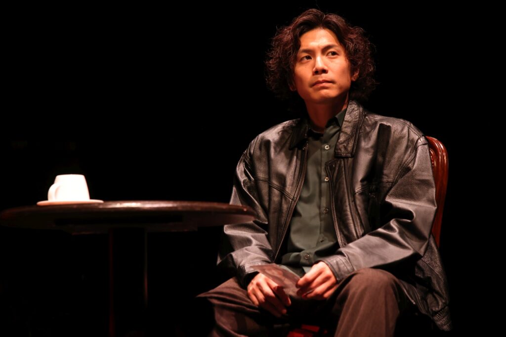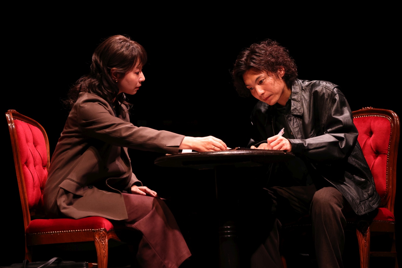 明かりが落ちた客席に新宿駅の発車音が響き、劇場という非日常の空間から“現実”へと引き戻された。物語の舞台は現代の新宿。興信所の調査員・本郷信吾(演:宮﨑秋人)は、喫茶店で待ち合わせた亀山裕子(演:朝海ひかる)から依頼を受ける。それは先月、歌舞伎町の雑居ビルの屋上から飛び降り自殺した娘・茉姫(演:伊礼姫奈)の“生きた足跡”をたどってほしいという切実なものだった。