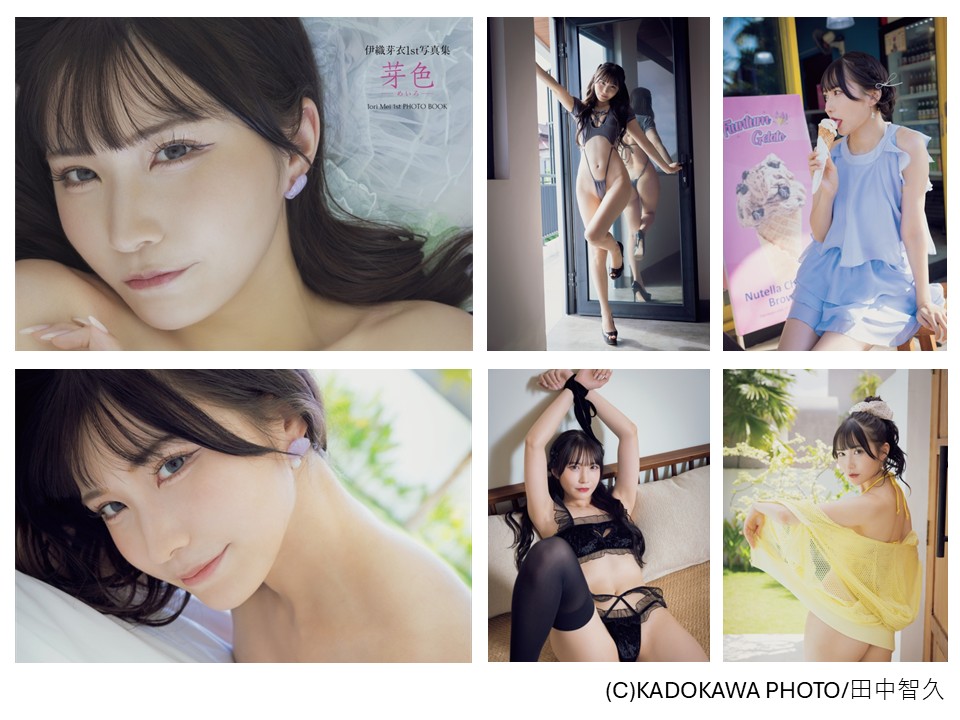 伊織芽衣の1st写真集『芽色-めいろ-』の表紙には、何とも言えない表情と目が吸い込まれそうと絶賛された水色のランジェリー姿のカットが採用された。数多くのWEBニュースにも掲載、発売情報解禁時にAmazon カテゴリー別ランキング第3位を獲得するなど早くも話題になっている。