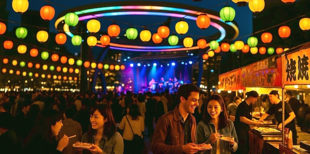 会場となる池袋西口公園グローバルリングには、名入れ提灯が装飾され、色とりどりの光が池袋の街をあたたかく照らします。さらに著名アーティストらによるステージパフォーマンスも見逃せません。