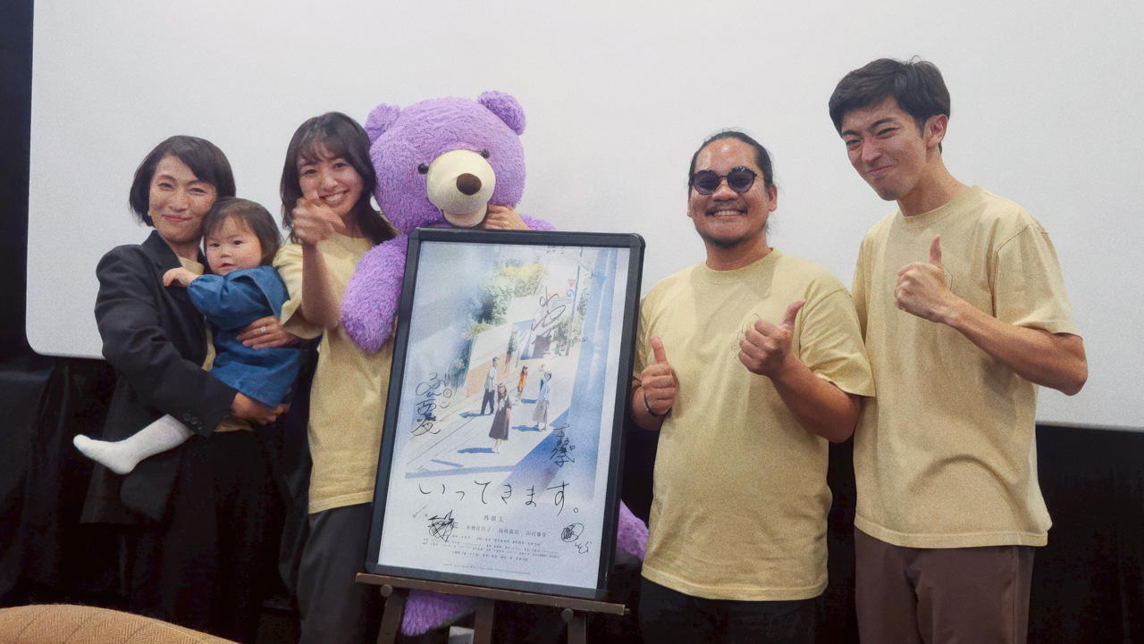 映画『いってきます。』の劇場公開初日となる2025年11月21日(金)、シモキタ-エキマエ-シネマ K2にて公開記念舞台挨拶が開催された。主演の西堀文や小池匠監督、プロデューサーの西岡空良ら5名は、映画ソムリエの東紗友美がMCを務める中、喜びを語りった。特に西岡プロデューサーは、本作が自身の実家の取り壊しをきっかけに企画されたことを明かし、実の母親がこの日初めて映画が撮られた事実を知ったという衝撃の裏話を告白。家族の濃密な時間を描いたホームドラマの門出を祝い、キャスト陣は役作りや撮影時の温かいエピソードを披露しました。未来への優しい祈りが込められた作品が、多くの観客の心に響く舞台挨拶となった。