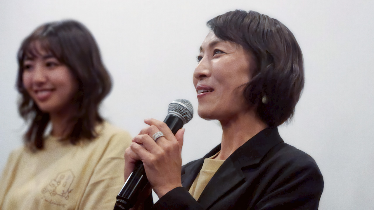 登壇:本橋佳代子さん(出演)、伊藤汐梨さん(歌手)、小池匠監督(脚本・本作監督)、西岡空良さん(撮影監督・プロデューサー)、MC:中里ゆみさん(俳優)