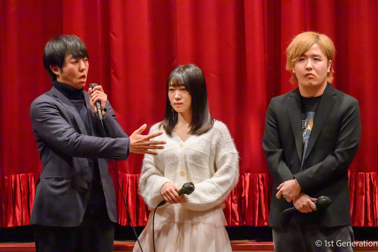 冒頭、脚本とプロデューサーを務めた土井康平氏は、タイトルの由来について語りました。 「『ゆい』という題名は、亡くなった『ゆいちゃん』の名前であると同時に、『結ぶ』と書いて『ゆい』とも読みます。この作品がいろんな人の『結び』になればいいなと思って作りました。」 その言葉通り、本作は人との繋がりを温かく感じさせる作品として、会場の観客に届けられた。