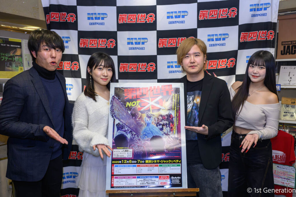 2025年12月6日(土)、横浜シネマ・ジャック&ベティにて、京浜ビデオ企画が主催するインディーズ映画の祭典『第四世界 (not) 3D』が開催。「個人の情熱と狂気」をテーマに掲げた本映画祭。Aプログラムの上映作品の一本として、実話を基にした中編映画『ゆい』(寺本勇也監督)が上映された。本作は、中学3年生で急性骨髄性白血病と診断された少女・町田くるるが、闘病中に「小山田優生(ゆいちゃん)」という少女の動画と出会い、生きる勇気を取り戻していく物語。上映後の舞台挨拶には、以下の4名が登壇し、制作の経緯や作品に込めた想いを語った。
