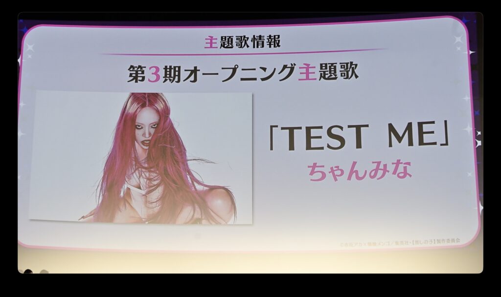 イベント中盤では新情報も解禁され、第3期のオープニング主題歌がちゃんみなの「TEST ME」に決定したことが発表された。