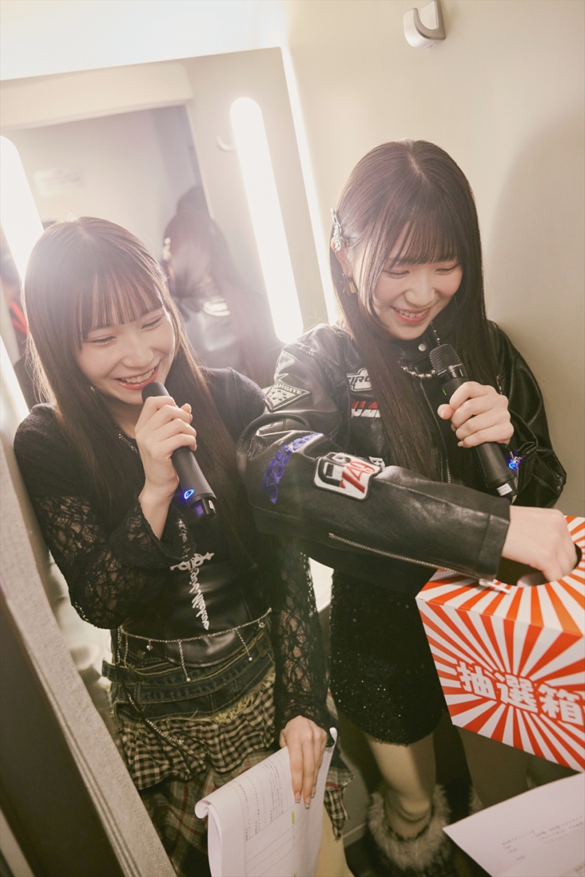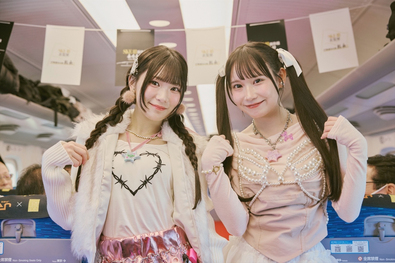ファッションショーの第二部では衣装のコンセプトがガラッと変わり、“甘め”衣装の二人が「重力シンパシー」に合わせて再び車内に登場。ライブには慣れているファンの方々も、ファッションショーはとても新鮮に映ったはず。しかも新幹線の車内という特別な空間ということもあって、ひときわ特別な思い出となったのではないだろうか。