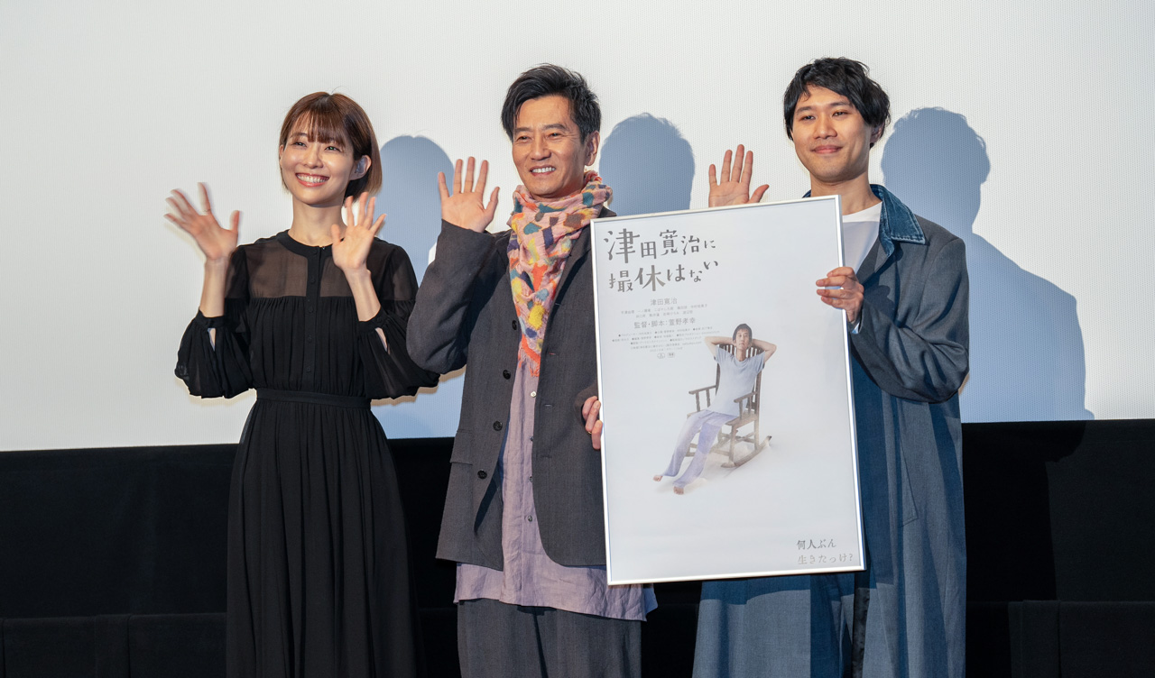 一方、萱野監督は本作の演出について、多くのNGを出しながら俳優と共にゴールを目指すスタイルをとったといい、津田も「ゴールが見えている監督と伴走できた」と信頼を寄せた。最後に監督は、本作について「津田さんのかわいいところがたくさん見られる『津田寛治のアイドルムービー』だと思って撮った」と独自の視点を披露。津田が「裸のシーンもあった」と照れ笑いを浮かべる一幕もあった。